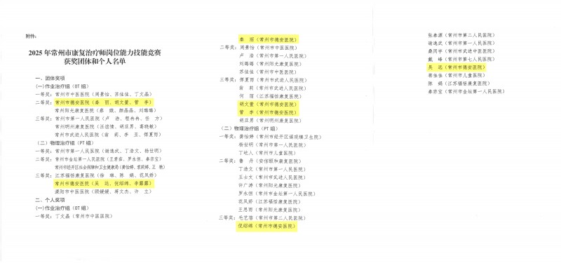 | 喜报!常州市德安医院在全市康复治疗师岗位技能大赛中荣获佳绩 |