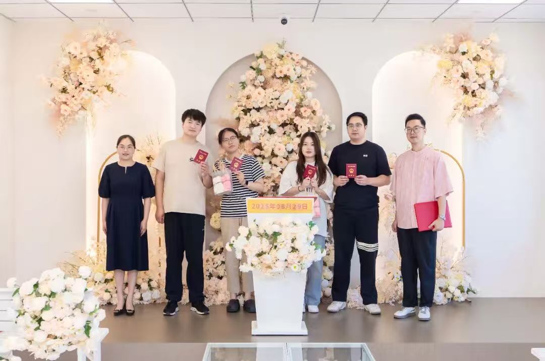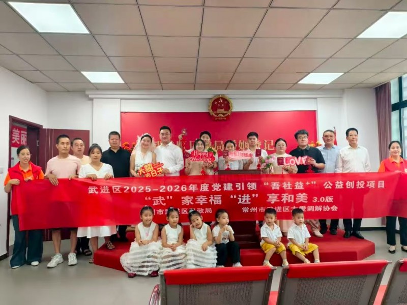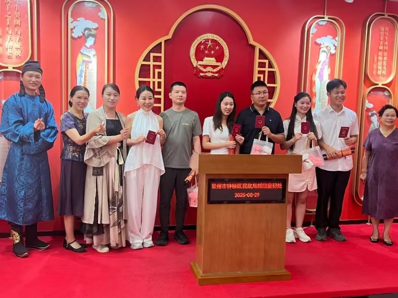 天宁区开展了“爱在七夕·幸福启航”新风尚婚俗倡导暨集体颁证仪式,新人们通过集体宣誓、婚俗新风倡议、慈善捐赠、爱的存款互动游戏等环节,感悟婚姻责任与公益温暖,弘扬简约婚俗新风尚。