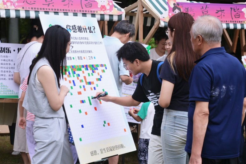 “感恩墙涂色”活动则吸引了许多家庭参与。父母与孩子一同驻足,轻声讨论着“今天,你想感谢什么”这个话题,从“健康”、“家庭”到“工作”,每一个选择都是一次温柔的提醒。参与者们认真地为选定的格子涂上颜色,渐渐地,原本空白的感恩墙如同被点亮一般,绽放出多样的色彩,共同汇成一面充满温情的集体记忆。感恩,让我们重新发现那些被忽视的、生命中原已拥有的美好。