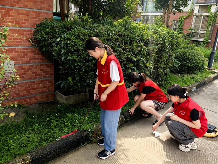 启动仪式后,同学们立刻领上工具,整装待发,积极投身社区洁净家园活动中。烈日骄阳下,同学们播种了一颗颗文明的种子,这些种子在汗水的浇灌下已经悄悄在心中生根发芽,让青春的力量为社区治理增添活力与动能。